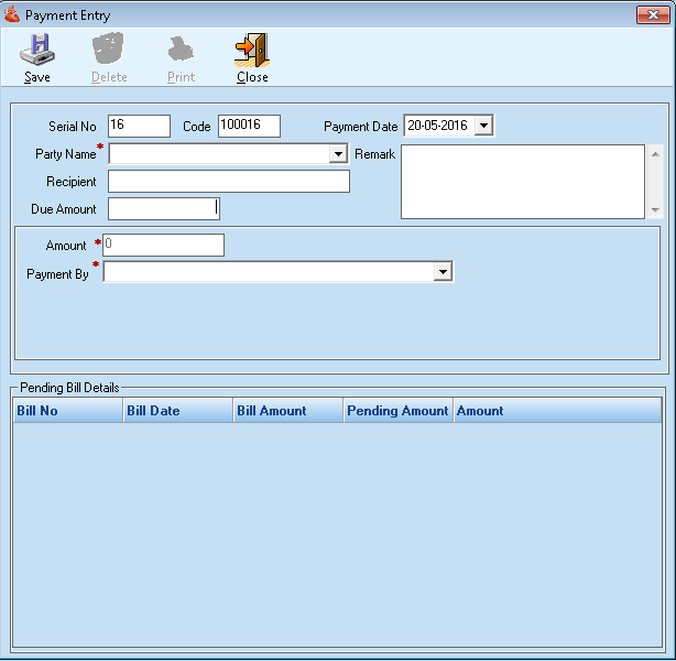 - Fill the details of party master and then click on “Save” or press “Alt +S” to save party master.