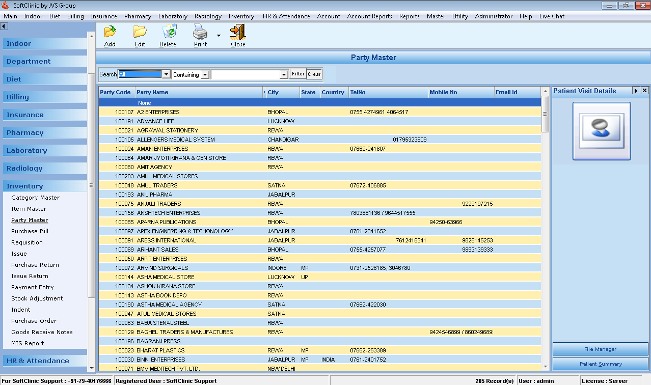 Click on Party Master on vertical outlook bar on the left side of the screen to view the list of Party master.