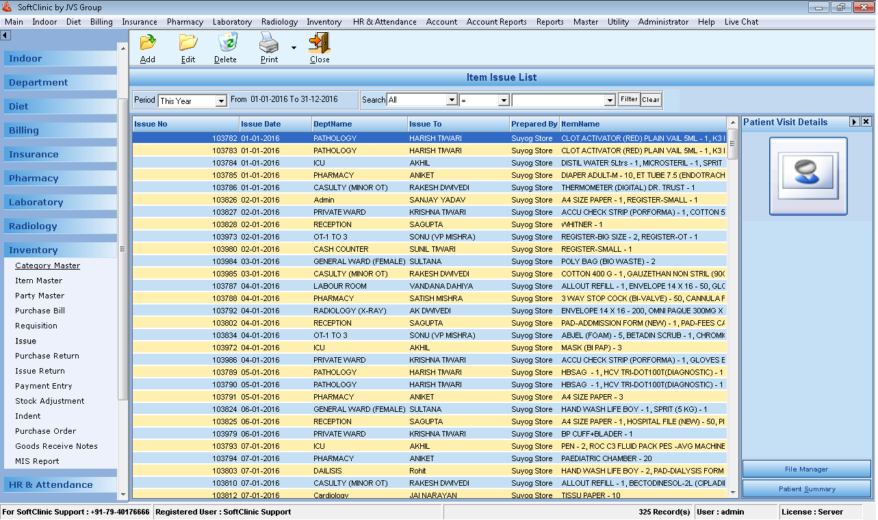 Click on Issue Return on vertical outlook bar on the left side of the screen to view the list of Issue return.