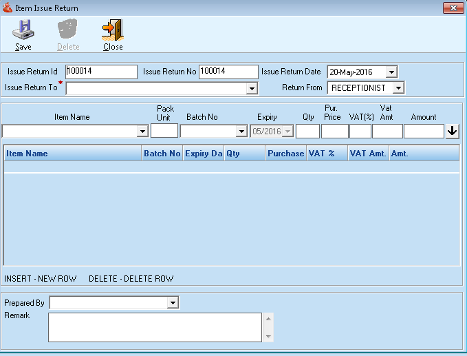 - Press the “Delete” button on the menu, or press “Alt + D” to delete the selected Issue Return.