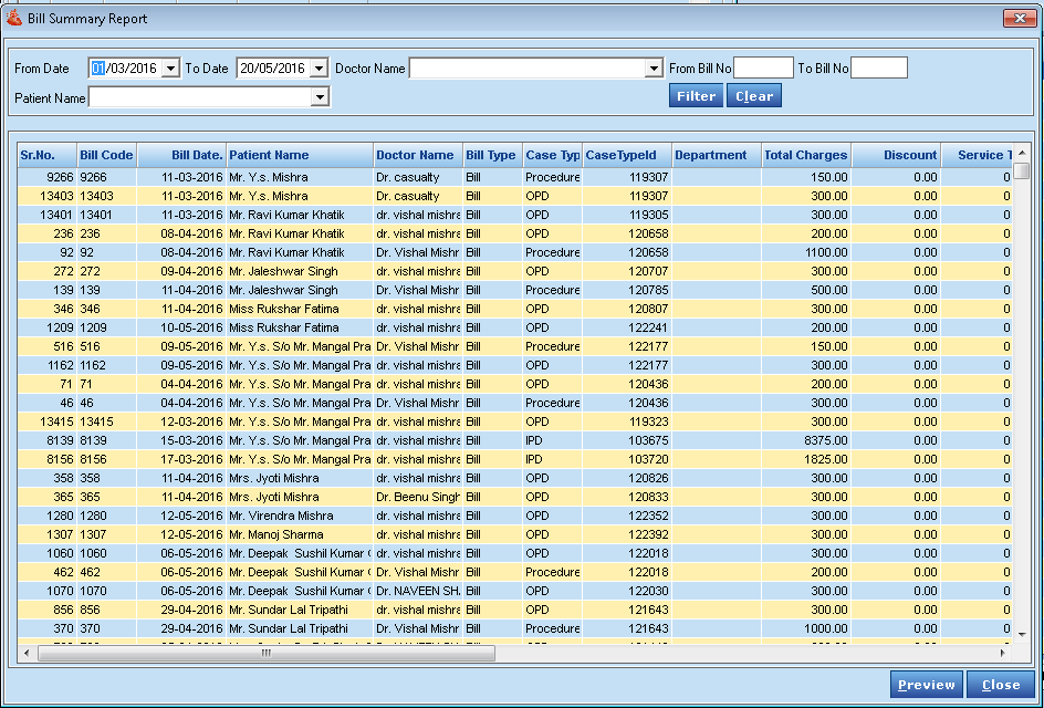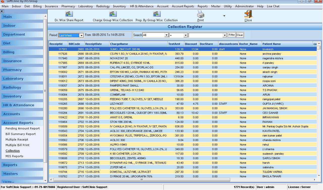 - You can view the daily entries of Bill. Receipt, Pharmacy, Laboratory, and Radiology