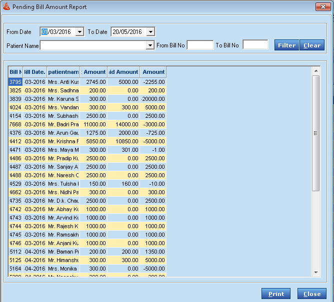 Click on Pending Amount report on vertical outlook bar on the left side of the screen to view the list of pending amount.