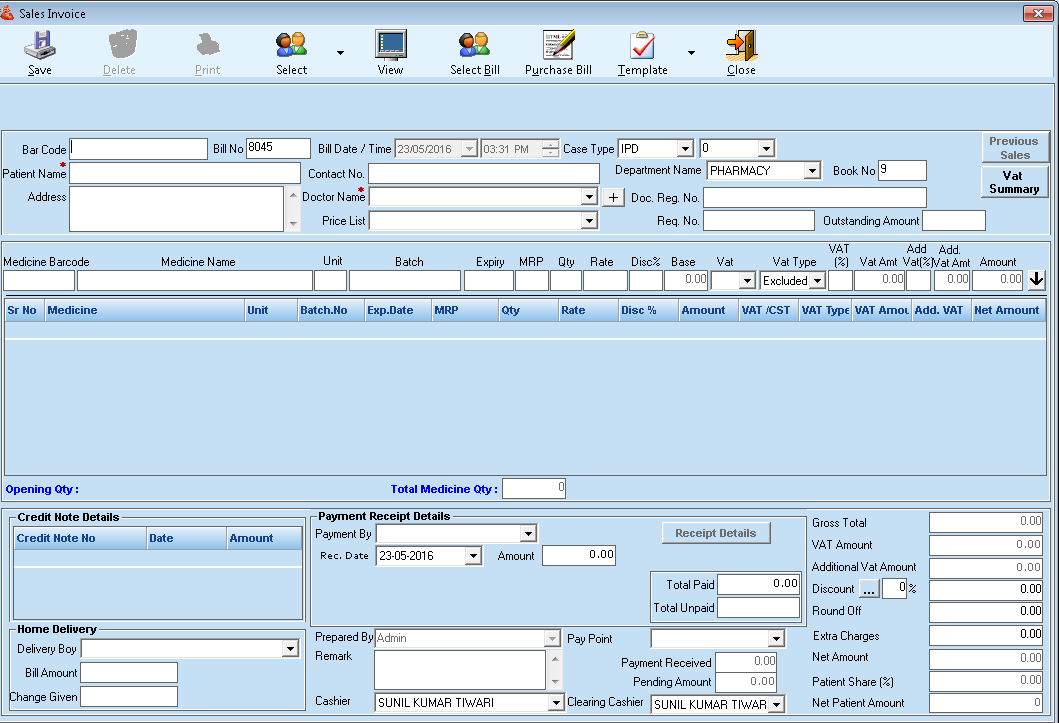 - You can submit new patient details or can add existing patients data for the sales invoices.