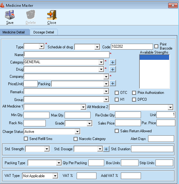 - Fill up full form like Medicine detail and dosage detail of the medicine and click on the save button, to save all the medicine information.