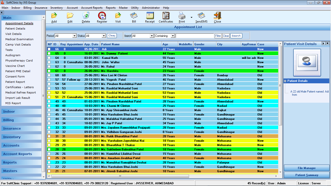 - On login to the system, above screen will be opened as default i.e. “Appointment List” that shows the appointment list of a patient.