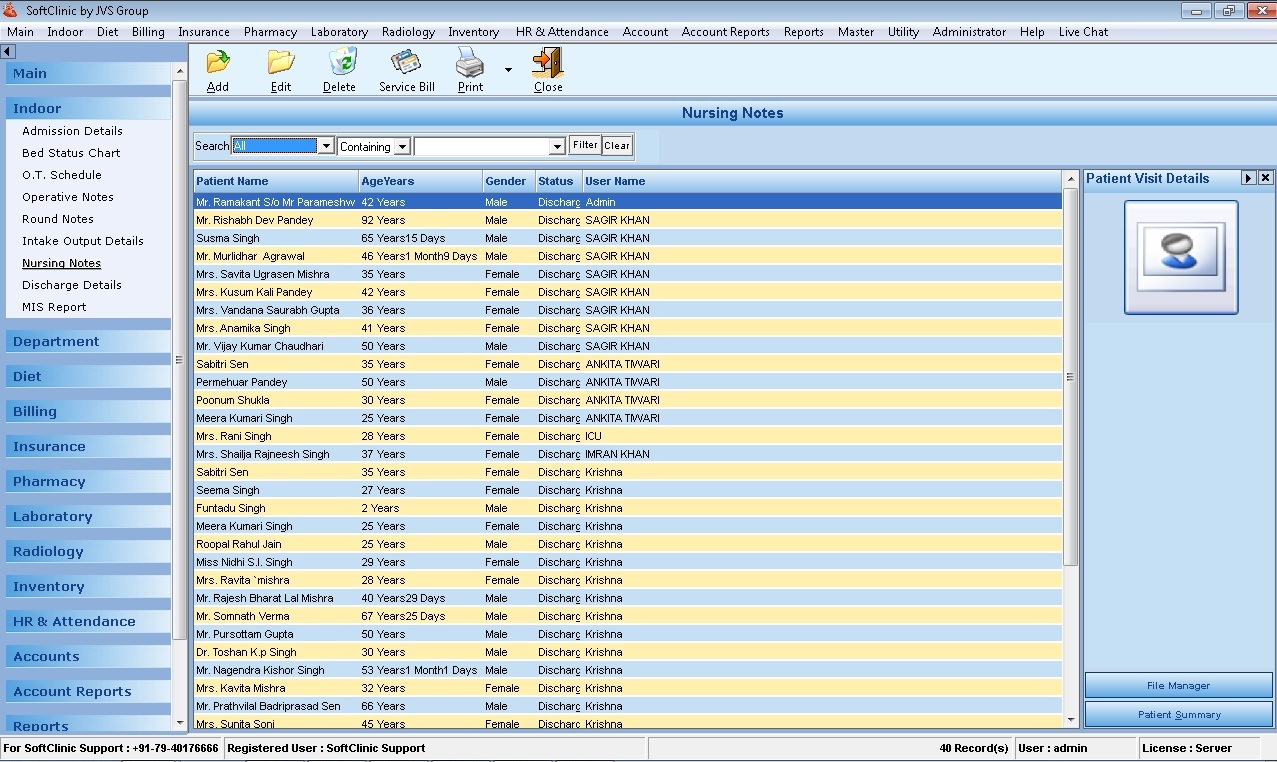 - After entering all the details in nursing notes, click on “Save” to save the entry.
