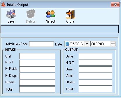 - Fill the details of Intake Output Details. and then click on “Save” or press “Alt +S” to save the Intake Output Details.