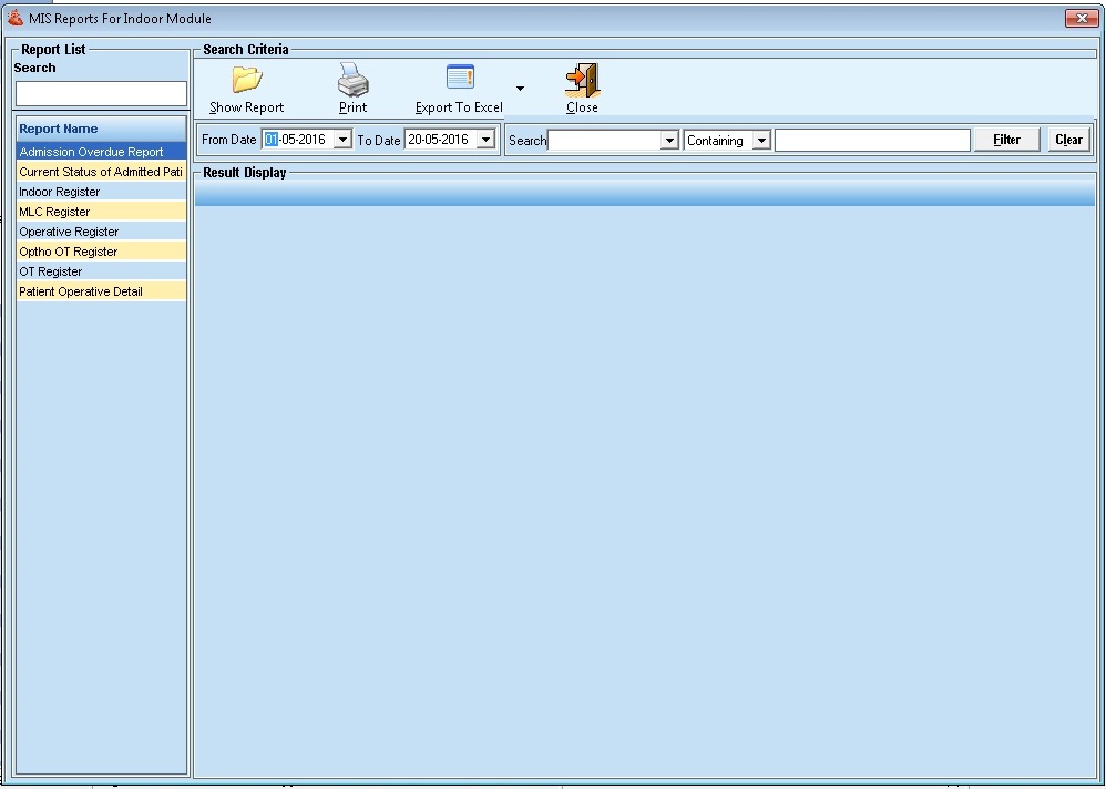 Click on Admission Details on vertical outlook bar on the left side of the screen to view the list of admitted patients.