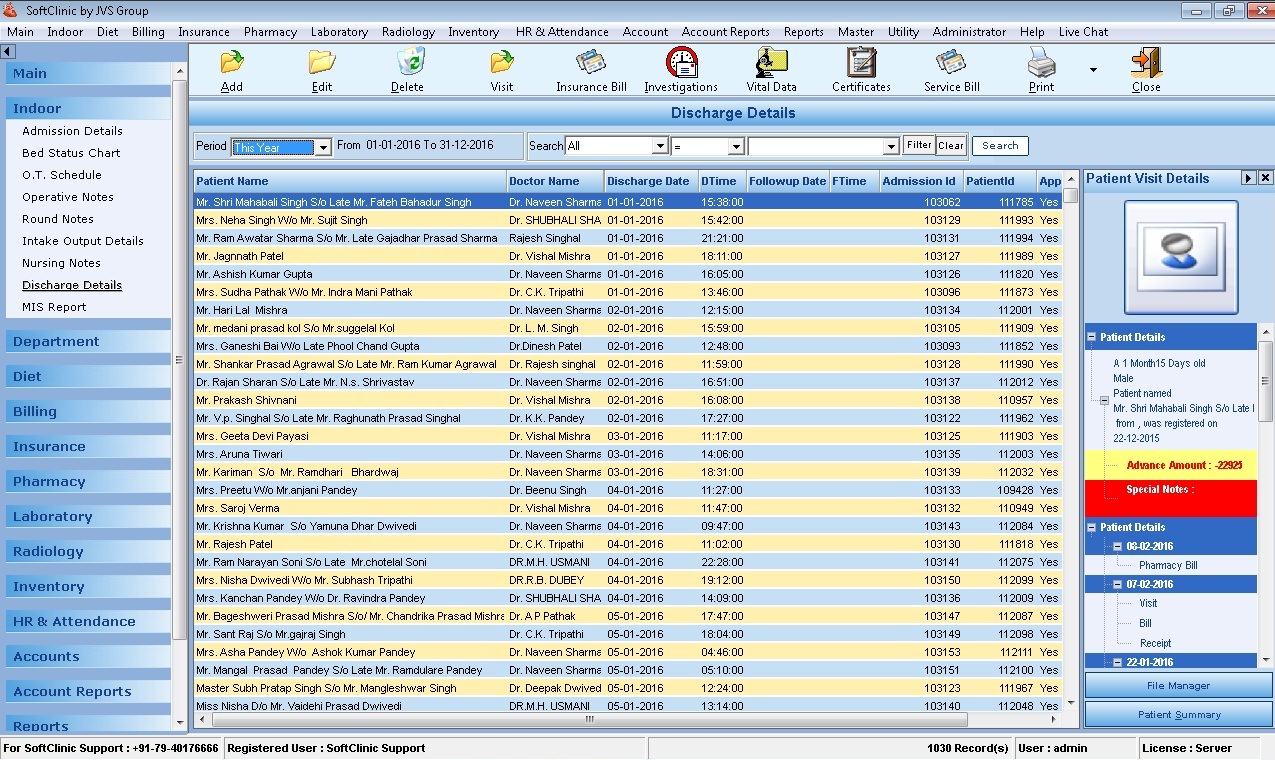 - Fill the details of discharge details and then click on “Save” or press “Alt +S” to save the discharge details.