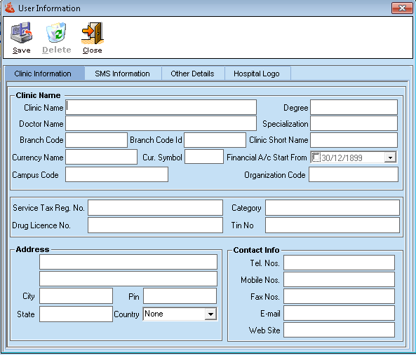 - After setting the clinic name , you can save these details by clicking on the Save Button.